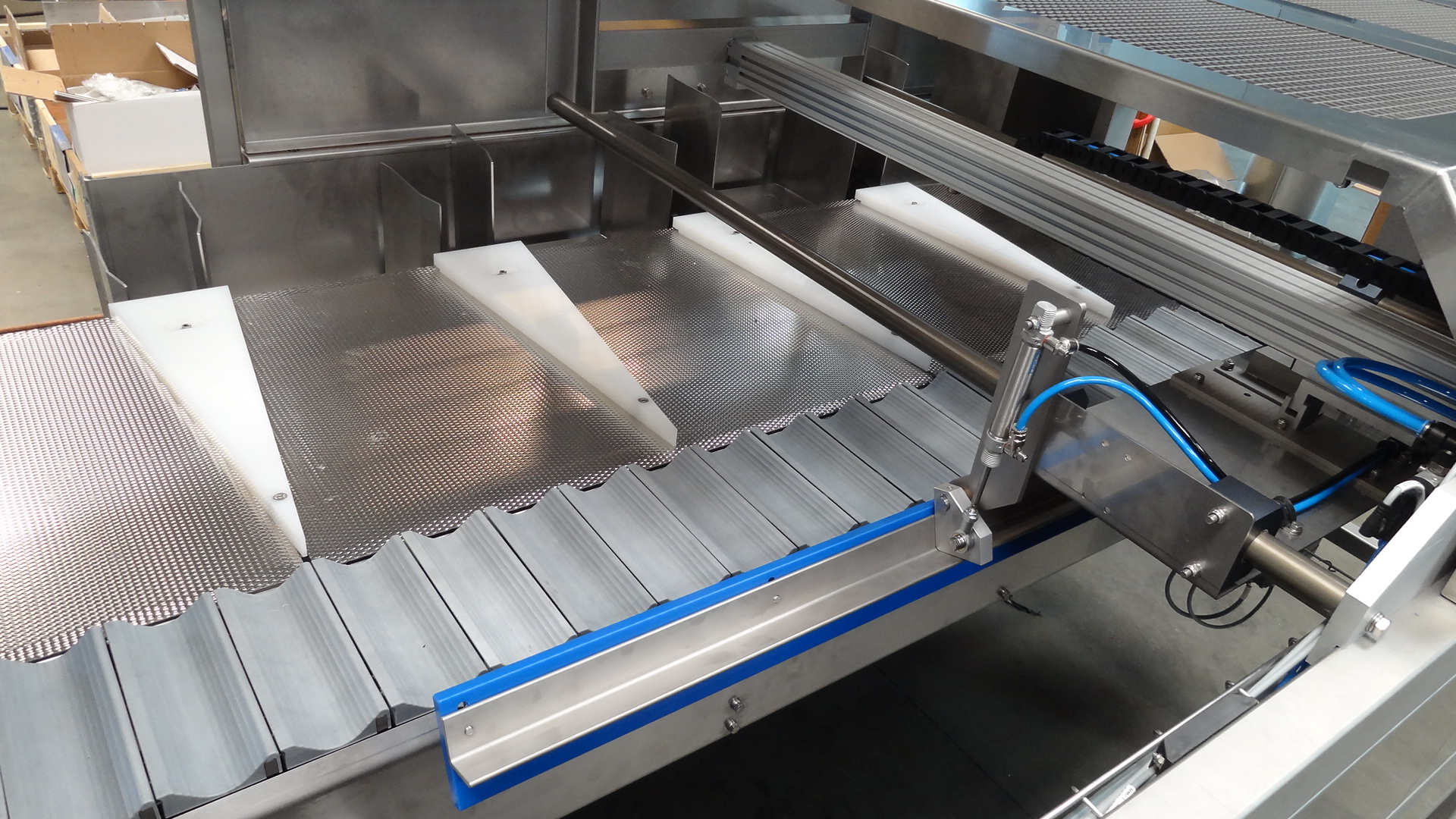 The Multicounter is manufactured with chain driven U-cassettes, where drilled baguettes are pushed into the U-cassettes for stacking in layers of e.g. 4 layers of each 5 products.