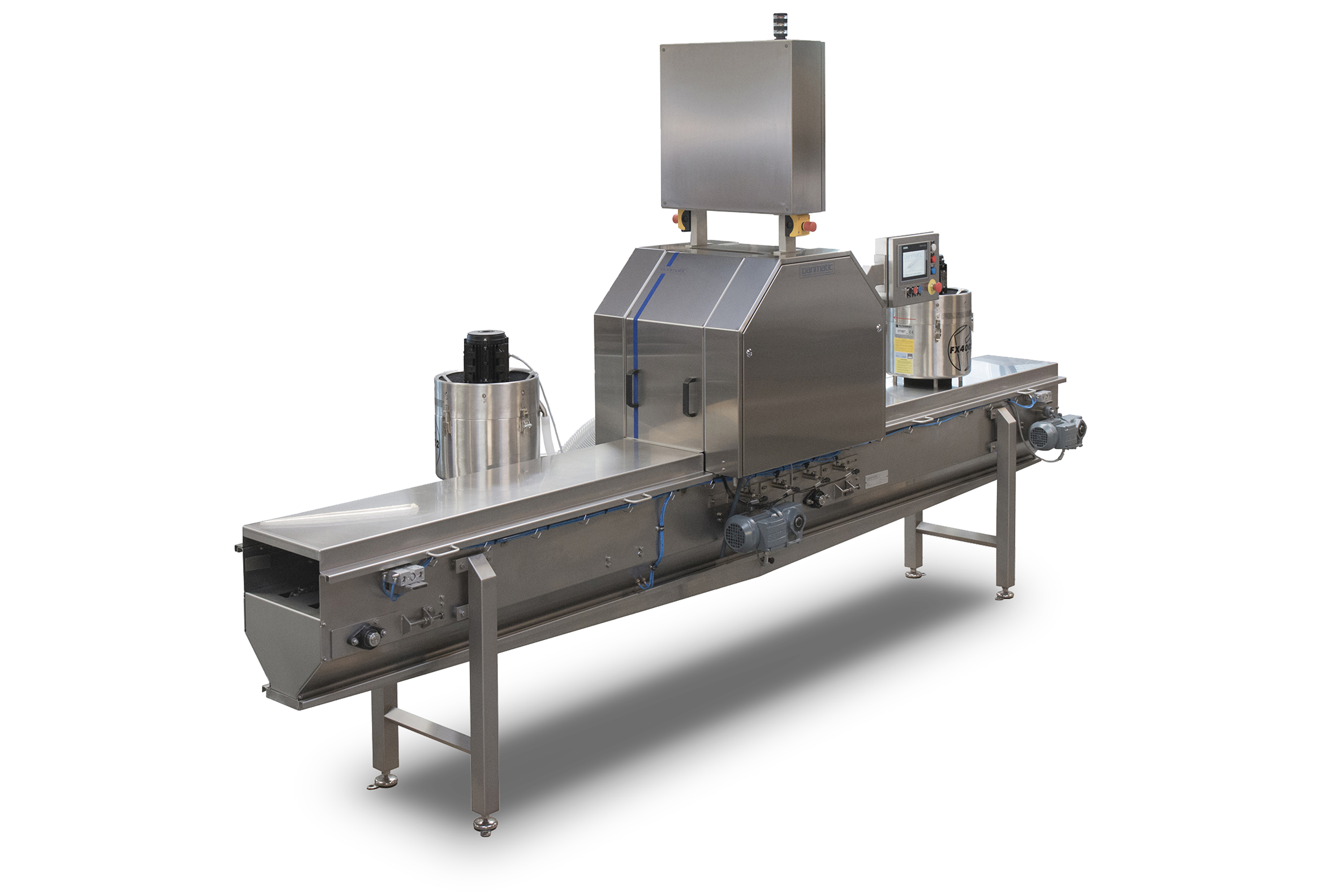Spraying is performed without atomized air by PulsaJet® Automatic Spray Nozzles, which offer adjustable high speed pulsing up to 5.000 cycles per minute.
