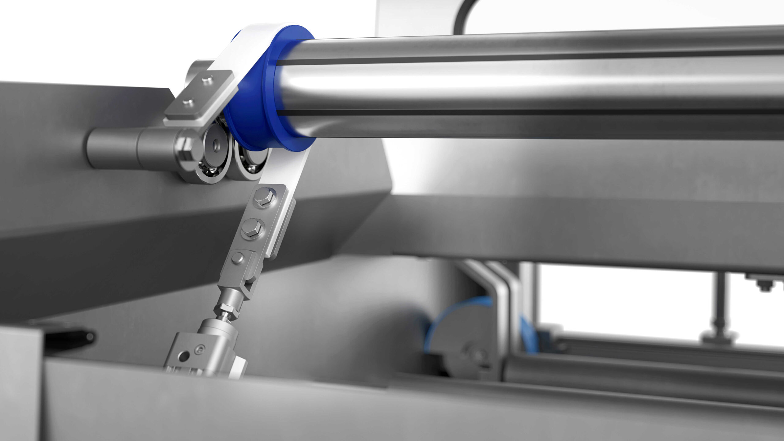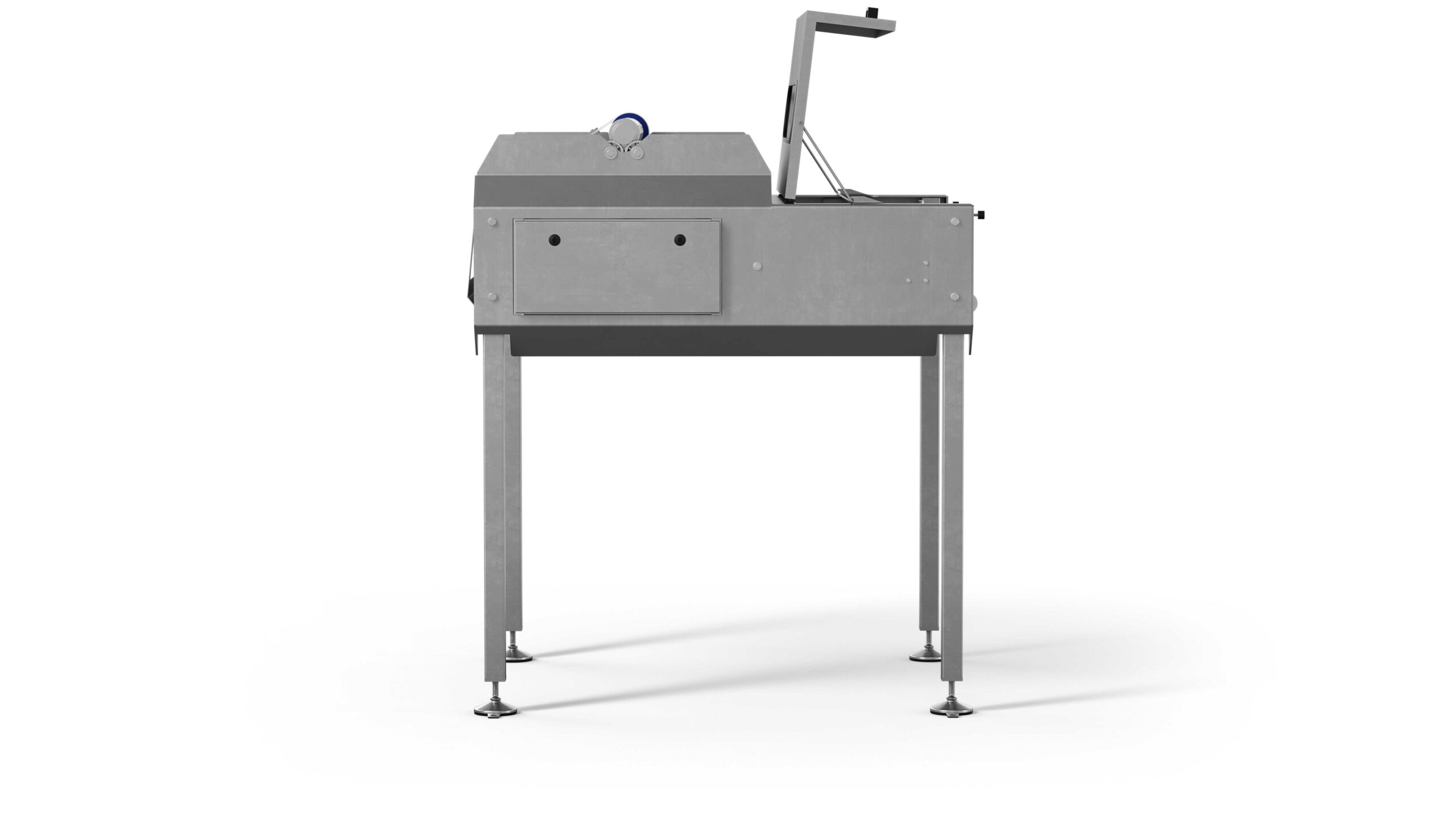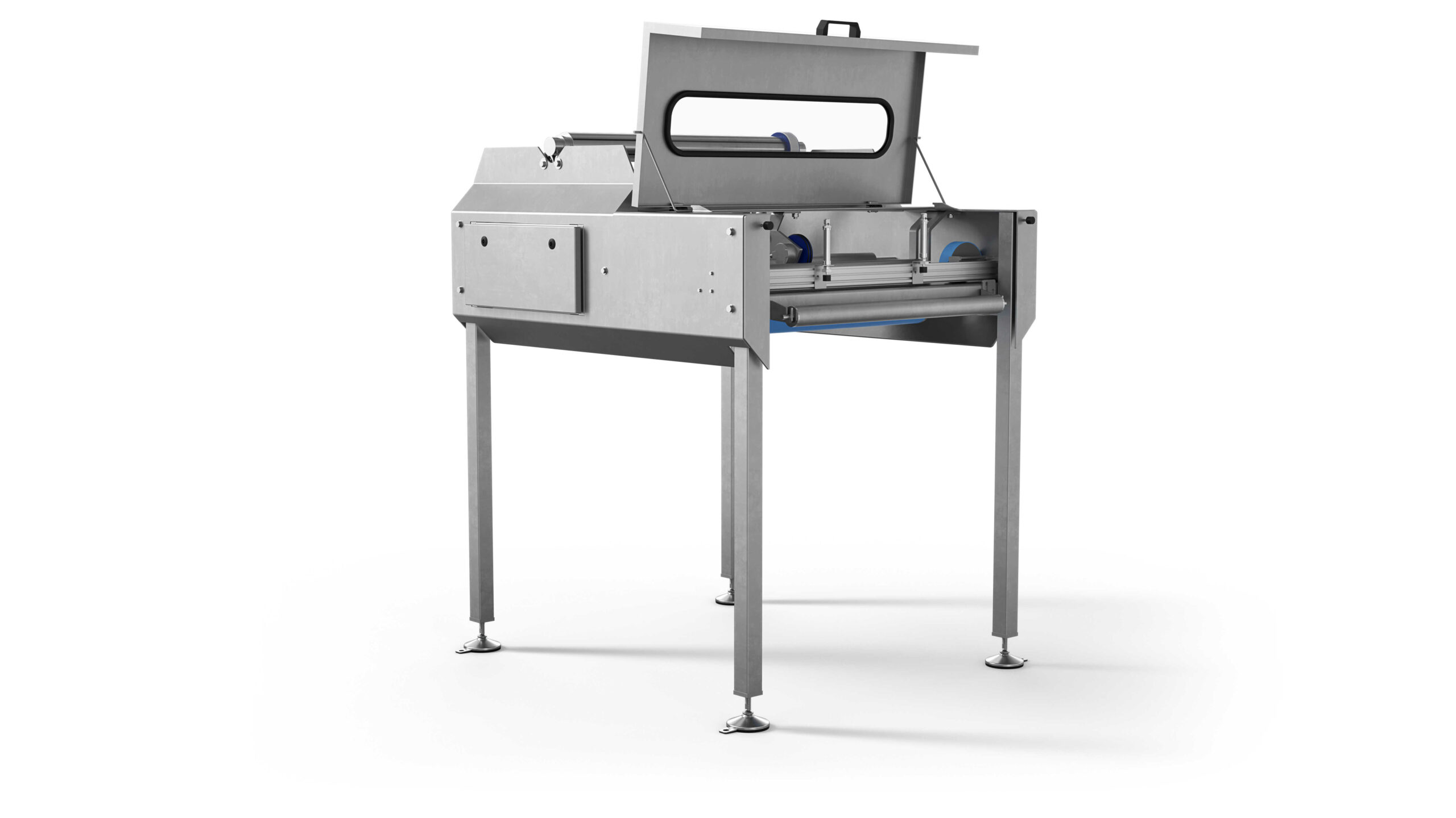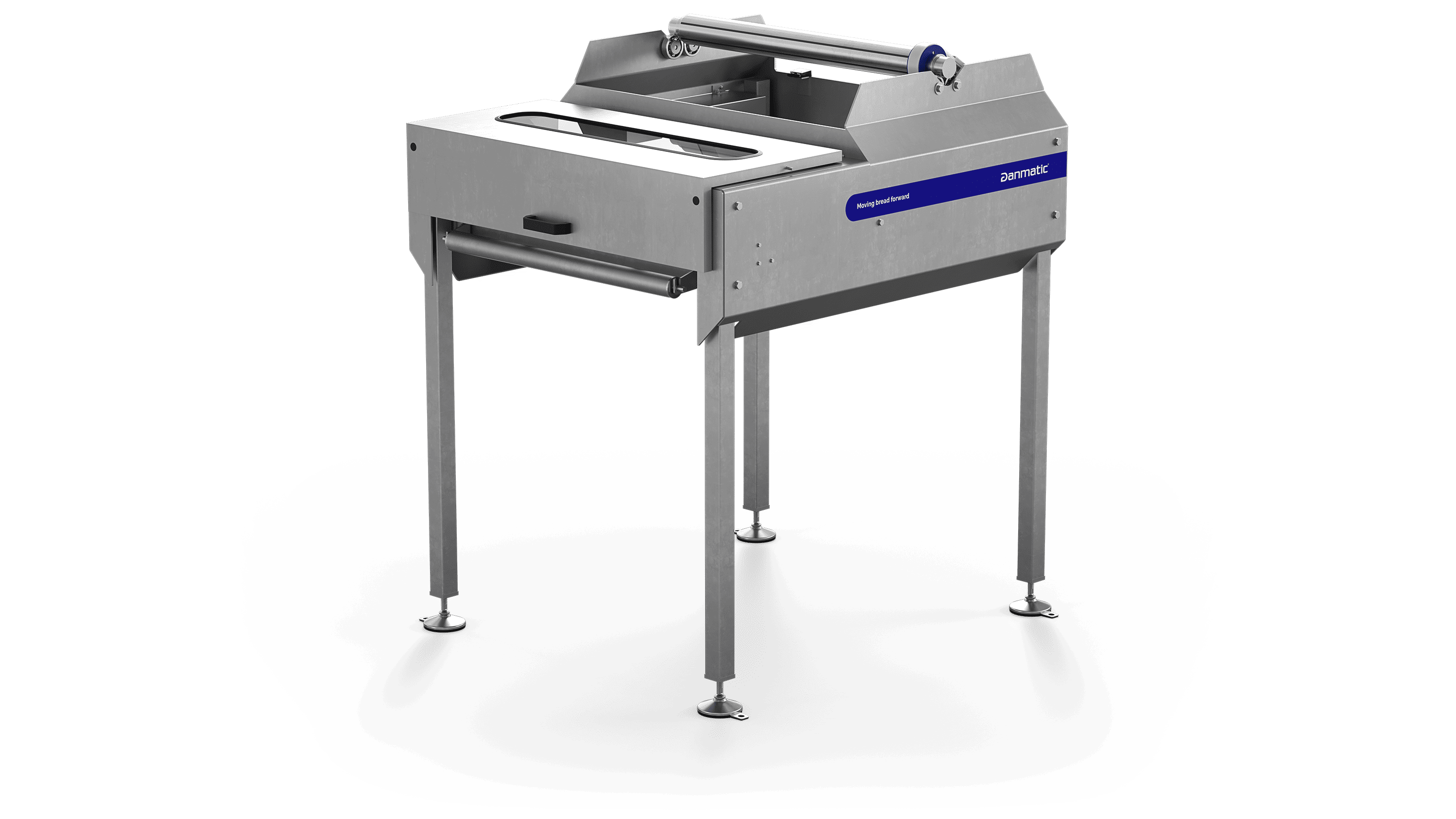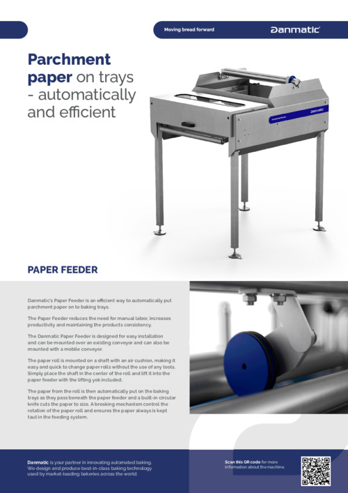 The paper from the roll is then automatically put on the baking trays as they pass beneath the paper feeder and a built-in circular knife cuts the paper to size. A breaking mechanism control the rotation of the paper roll and ensures the paper always is kept taut in the feeding system.