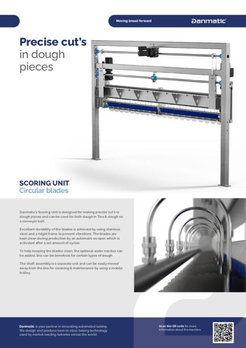 Danmatic's Scoring Unit is designed to ease the cutting process in the bakery, eliminating the hard and repetitive work of making cuts by hand and to make precise and controlled cuts to enhance the final appealing appearance.
