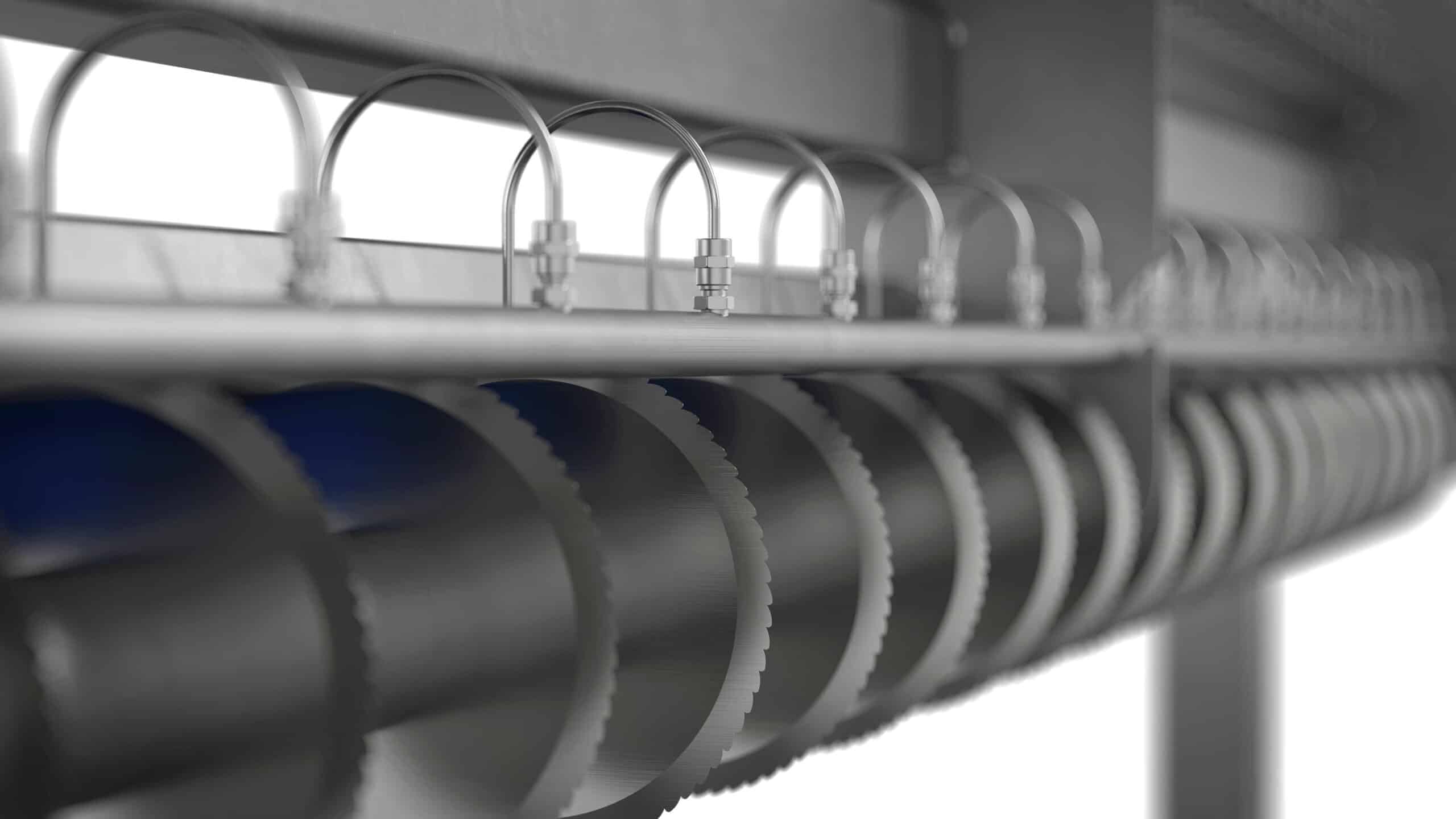 Excellent durability of the blades is achieved by using stainless steel and a ridgid frame to prevent vibrations. The blades are kept clean during production by an automatic scraper, which is activated after a set number of cycles.