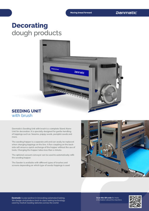 The Seeding Unit is specially designed for gentle handling of topping such as: Sesame, poppy seeds, pumpkin seeds and more.