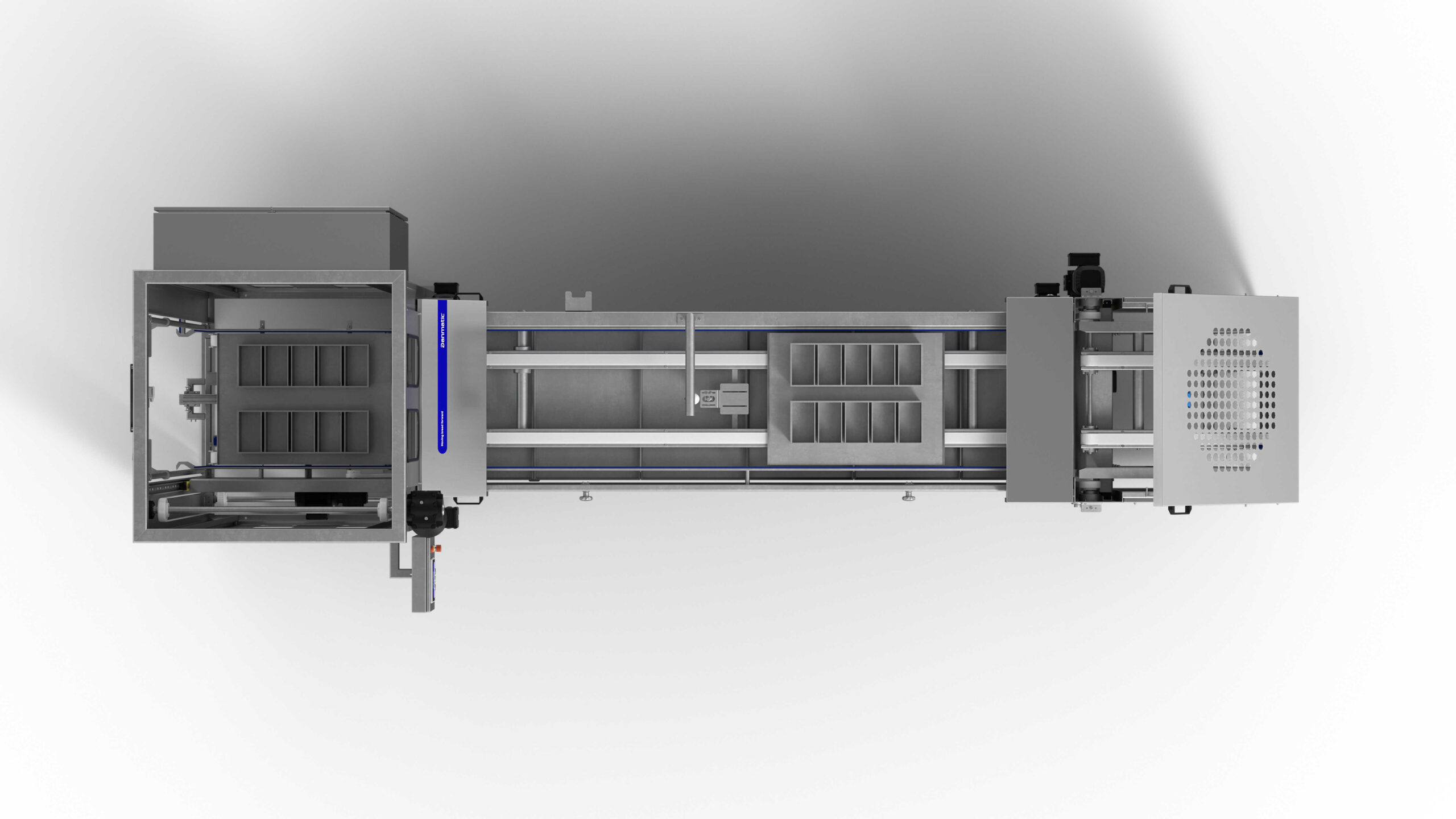 The Tray Handling System provides a uniform and efficient production at all time. The Danmatic Tray Handling System is a compact system that consists of a loader/unloader and a double conveyor with an integrated elevator all in one solution. The system is one of the fastest and most powerful on the market.